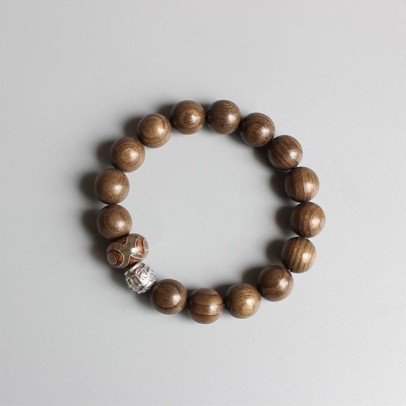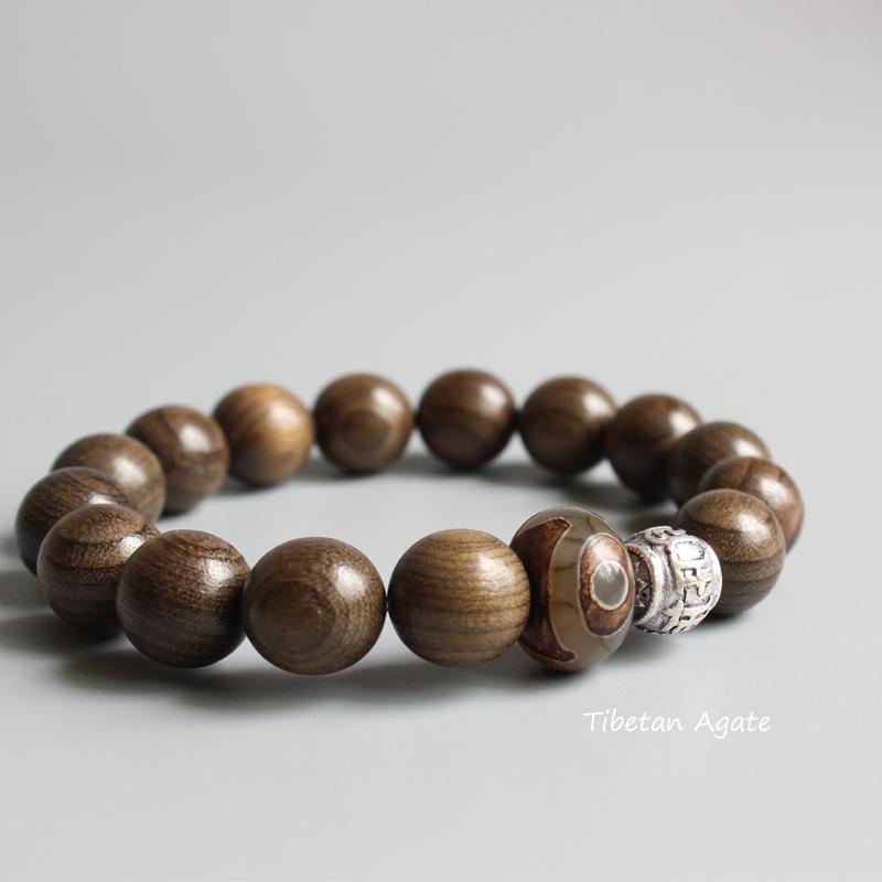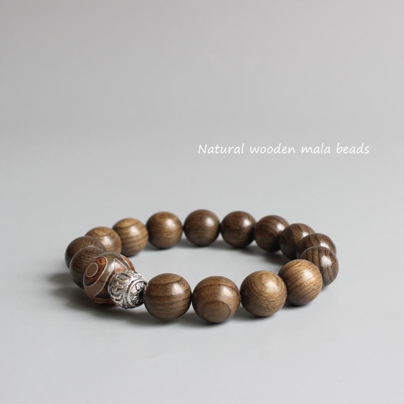 White Copper Natural Wood 'OM MANI PADME HUM' Bracelet