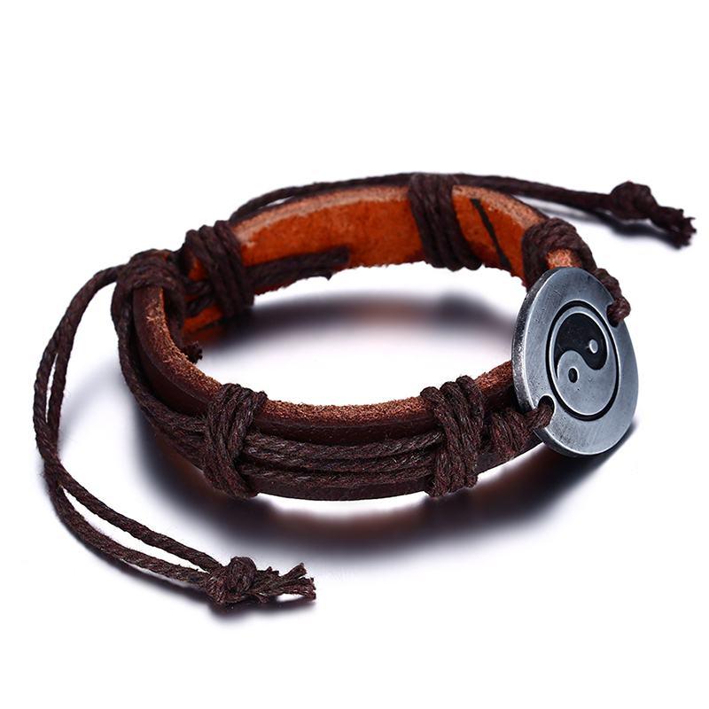Yin & Yang Adjustable Multi-layer Leather Bracelet